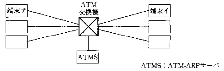 >ATMコネクションを設定するために、相手端末のIPアドレスをATMアドレスに変換するATMSを設ける。