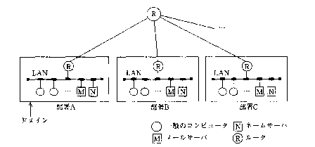 この電子メールシステムの構成のように、ネームサーバの機能が独立しているのは、