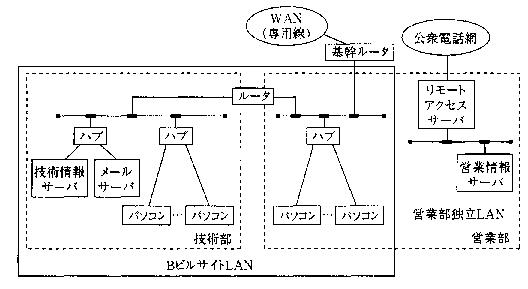 図6に、Bビルのネットワーク構成を示す。技術部と営業部は、それぞれ別のLANを