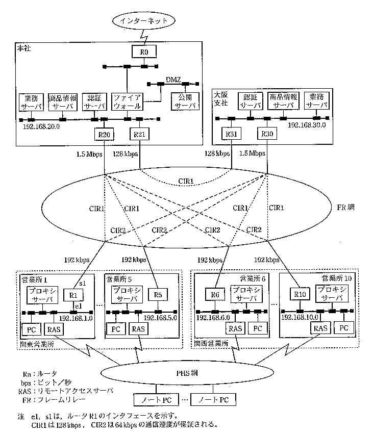 (1)図1の営業所10から、インターネット上のWebサーバヘの接続をR20経由