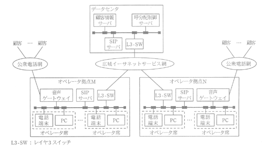データセンタとオペレータ拠点M及びNは互いに離れた場所になるので,コール